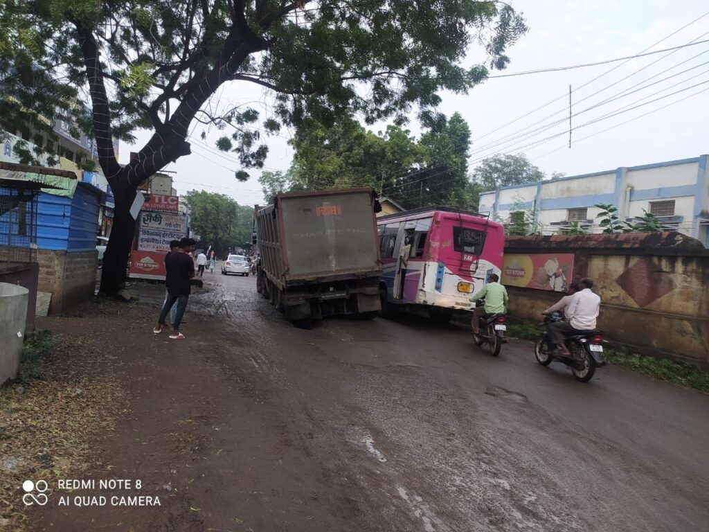 рд╕реНрдерд┐рддрд┐: рдлреБрд▓ рд▓реЛрдбреЗрдб рдбрдВрдкрд░ рдХреЗ рдкреАрдЫреЗ рдХреЗ рдЫрд╣ рдЯрд╛рдпрд░ рд╕рдбрд╝рдХ рдореЗрдВ рдзрдВрд╕ рдЧрдП, рдЬрд┐рд╕рд╕реЗ рдбрдВрдкрд░ рддрд┐рд░рдЫрд╛ рд╣реЛ рдЧрдпрд╛ рдФрд░ рдХрд░реАрдм рдЖрдзреЗ рдШрдВрдЯреЗ рддрдХ рдорд╛рд░реНрдЧ рдЕрд╡рд░реБрджреНрдз рд░рд╣рд╛ред