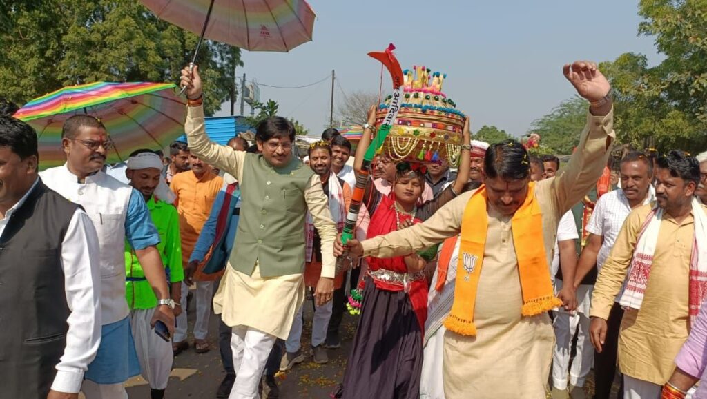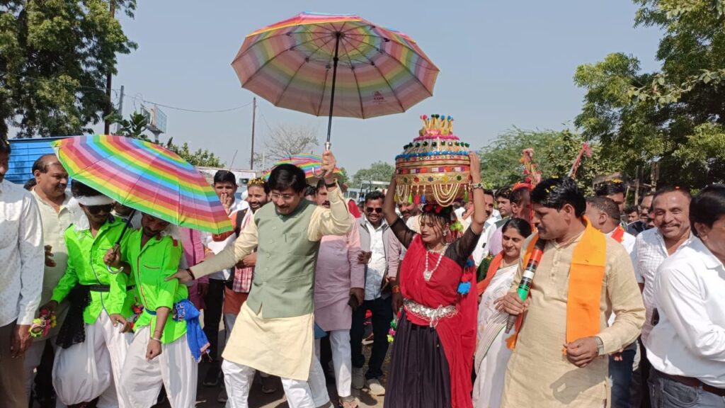 тАЛрднрдЧрд╡рд╛рди рдмрд┐рд░рд╕рд╛ рдореБрдгреНрдбрд╛ рд╡ рдХреНрд░рд╛рдВрддрд┐рдХрд╛рд░реА рд╢реВрд░ рдЯрдВрдЯреНрдпрд╛ рдорд╛рдорд╛ рднреАрд▓ рдХреА рдкреНрд░рддрд┐рдорд╛ рдХрд╛ рдкреВрдЬрди-рдЕрд░реНрдЪрди рдХрд░рдиреЗ рдХреЗ рдмрд╛рдж рджреЛрдкрд╣рд░ 2 рдмрдЬреЗ рдпрд╛рддреНрд░рд╛ рдХреЛ рд░рд╛рдЬреНрдпрд╕рднрд╛ рд╕рд╛рдВрд╕рдж рд╡ рдкреНрд░рджреЗрд╢ рднрд╛рдЬрдкрд╛ рдорд╣рд╛рдордиреНрддреНрд░реА рдбреЙ. рд╕реБрдореЗрд░рд╕рд┐рдВрд╣ рд╕реЛрд▓рдВрдХреА рдФрд░ рднрд╛рдЬрдкрд╛ рдЬрд┐рд▓рд╛ рдЕрдзреНрдпрдХреНрд╖ рдЕрдЬрдп рдпрд╛рджрд╡ рдиреЗ рд╣рд░реА рдЭрдВрдбреА рджрд┐рдЦрд╛рдХрд░ рд░рд╡рд╛рдирд╛ рдХрд┐рдпрд╛ред рдЗрд╕ рджреМрд░рд╛рди рдЖрджрд┐рд╡рд╛рд╕реА рд▓реЛрдХрдиреГрддреНрдп рджрд▓ рдХреЗ рд╕рд╛рде рдЬрдирдкреНрд░рддрд┐рдирд┐рдзрд┐рдпреЛрдВ рдФрд░ рдХрд╛рд░реНрдпрдХрд░реНрддрд╛рдУрдВ рдиреЗ рдирд╛рдЪрддреЗ-рдЭреВрдорддреЗ рд╣реБрдП рдпрд╛рддреНрд░рд╛ рдХрд╛ рд╕реНрд╡рд╛рдЧрдд рдХрд┐рдпрд╛ред