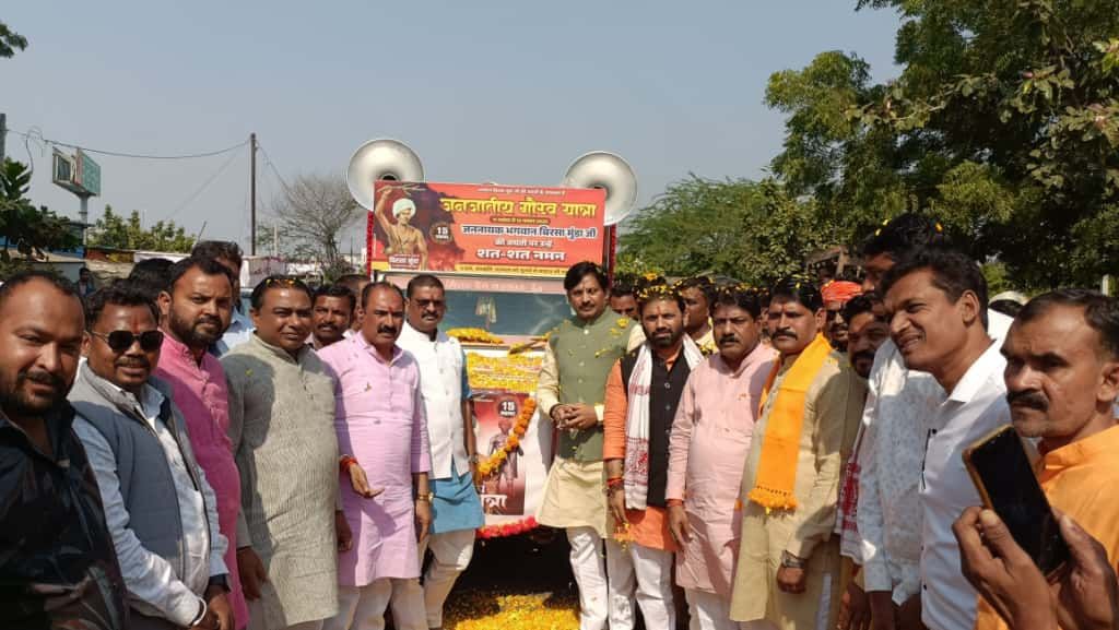 тАЛрднрдЧрд╡рд╛рди рдмрд┐рд░рд╕рд╛ рдореБрдгреНрдбрд╛ рдХреА рдЬрдпрдВрддреА рдХреЗ рдЕрд╡рд╕рд░ рдкрд░, рд░рд╛рд╖реНрдЯреНрд░реАрдп рдЬрдирдЬрд╛рддреАрдп рдЧреМрд░рд╡ рд░рде рдпрд╛рддреНрд░рд╛ рдХрд╛ рд╢реБрднрд╛рд░рдВрдн рдордВрдЧрд▓рд╡рд╛рд░ рдХреЛ рдЧреНрд░рд╛рдо рдмрд░реБрдлрд╛рдЯрдХ рд╕реЗ рднрд╡реНрдп рд░реВрдк рд╕реЗ рдХрд┐рдпрд╛ рдЧрдпрд╛ред рдпрд╣ рдпрд╛рддреНрд░рд╛ 11 рд╕реЗ 15 рдирд╡рдореНрдмрд░ рддрдХ рдЪрд╛рд░реЛрдВ рд╡рд┐рдзрд╛рдирд╕рднрд╛ рдХреНрд╖реЗрддреНрд░реЛрдВ рдореЗрдВ рд╣реЛрддреЗ рд╣реБрдП рдЬрд┐рд▓реЗрднрд░ рдореЗрдВ рднреНрд░рдордг рдХрд░реЗрдЧреАред