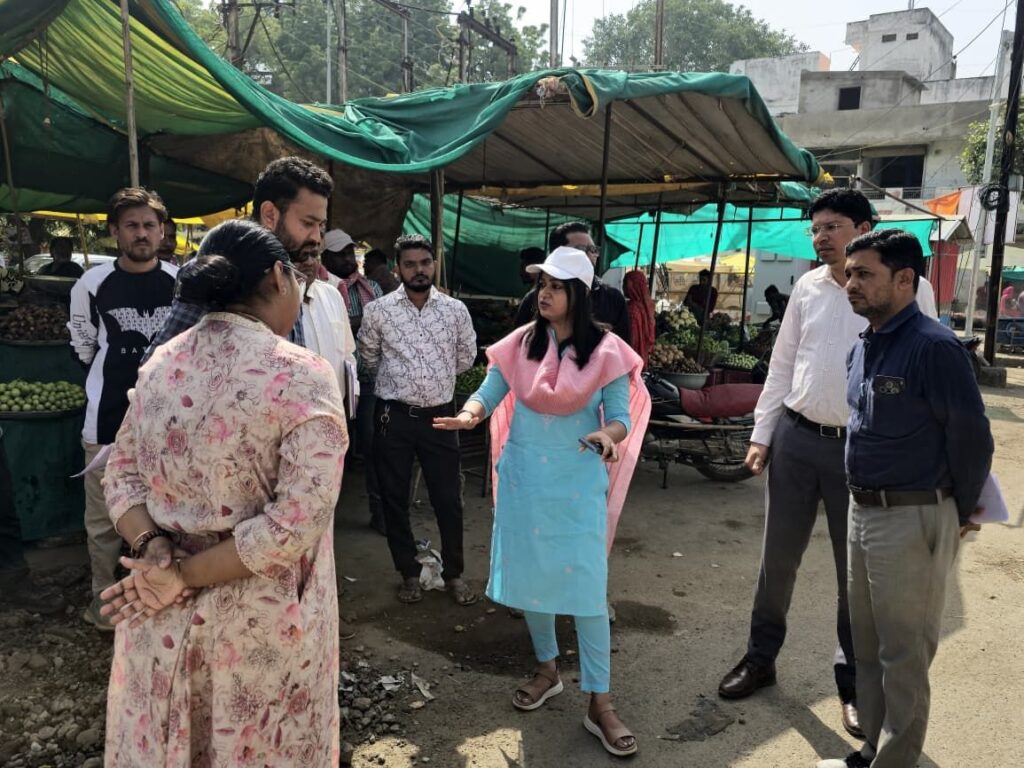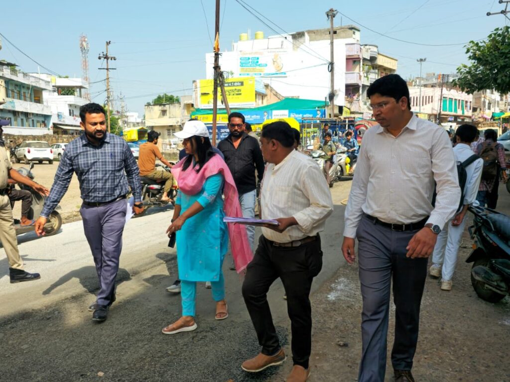 कलेक्टर श्रीमती जयति सिंह ने शनिवार शहर के पाला बाजार स्थित मुख्य मार्ग का निरीक्षण किया।