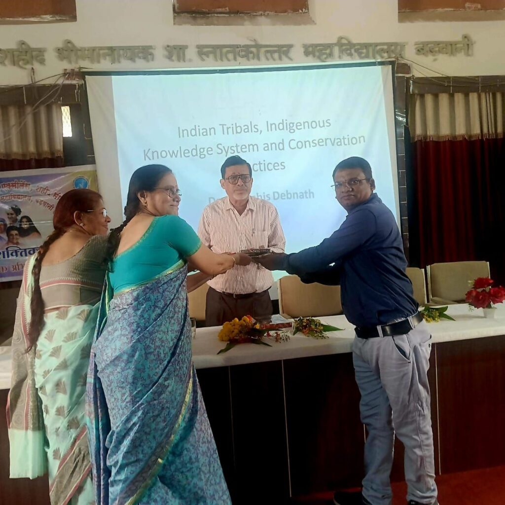 आदिवासी समुदाय प्राचीन काल से अपनी जीवन शैली एवं अपनी संस्कृति के कारण संपूर्ण विश्व में अपनी अलग पहचान से जाना जाता है हमारे देश में आदिवासी समुदाय की कई उप जातियां पाई जाती है जो हमारी प्रकृति एवं अपनी संस्कृति को लेकर प्रत्यक्ष अप्रत्यक्ष तौर पर सतत विकास के आयाम को पूर्ण कर रहा है एवं हमारी जैव विविधता को भी बनाए हुए हैं बड़वानी जिला भी आदिवासी बाहुल्य जिलों में है जो अपनी संस्कृति एवं अपने खान-पान, अपने रहन-सहन, अपनी प्रकृति के प्रति अगाध निष्ठा से जाना जाता है इस क्षेत्र में अनुसंधान की अपार संभावनाएं हैं जो हमारे विद्यार्थियों को अनुसंधान के क्षेत्र में आगे बढ़ा सकती है उक्त वक्तव्य भारतीय ज्ञान परंपरा के एक पक्ष “जनजाति ज्ञान परंपरा एवं संरक्षण प्रविधियां” पर आयोजित कार्यशाला में डॉ. देवाशीष देवनाथ (सीनियर प्रोफेसर ऑफ एंथ्रोपोलॉजी) के द्वारा पी.पी.टी. प्रेजेंटेशन के माध्यम से कही गई