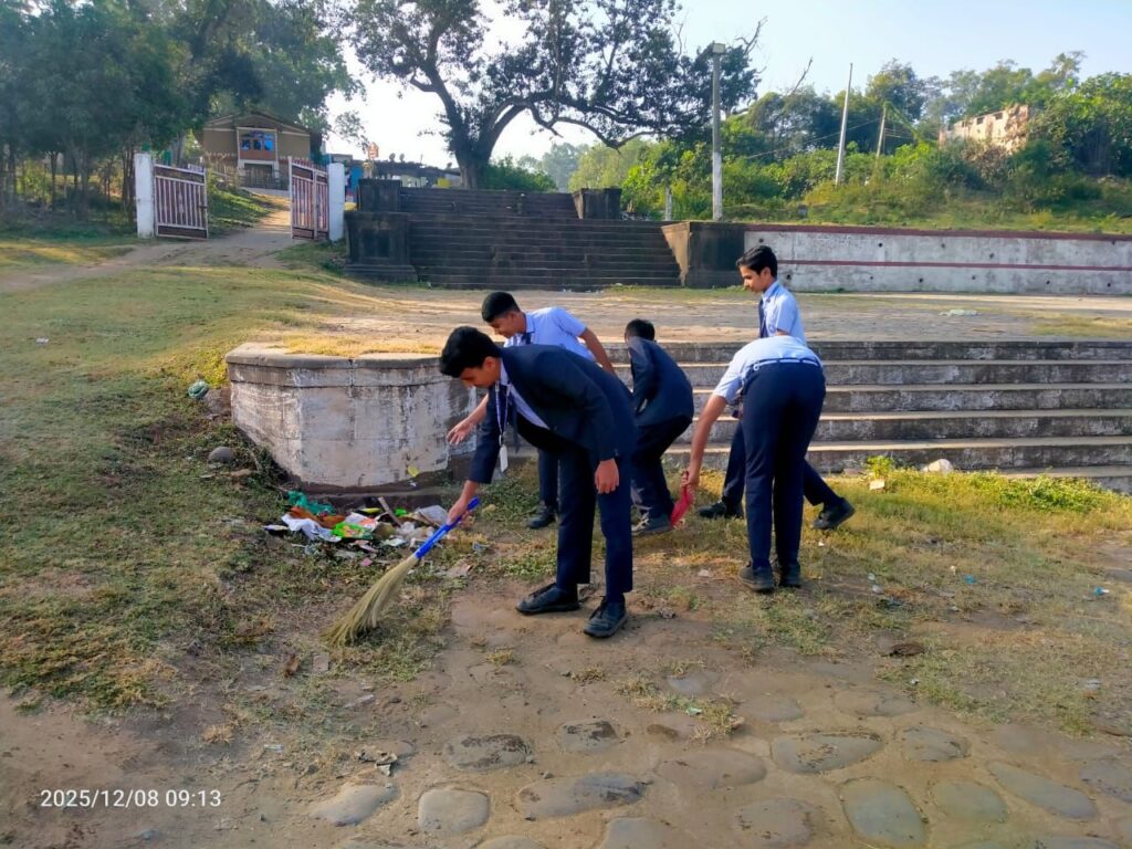 ​सोमवार सुबह विद्यालय के एनसीसी (NCC) एवं एनएसएस (NSS) के विद्यार्थियों ने हाथों में झाड़ू लेकर राम घाट की साफ-सफाई की। विद्यार्थियों ने घाट पर बिखरी पड़ी पॉलीथीन एवं अन्य कचरे को एकत्रित कर डस्टबिन में डाला और वहां मौजूद लोगों से नर्मदा को साफ स्वच्छ रखने की अपील की।