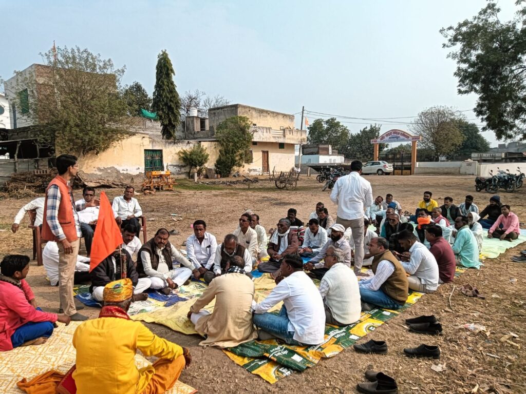 गांव-गांव में जनसंपर्क और भगवा ध्वज वितरण